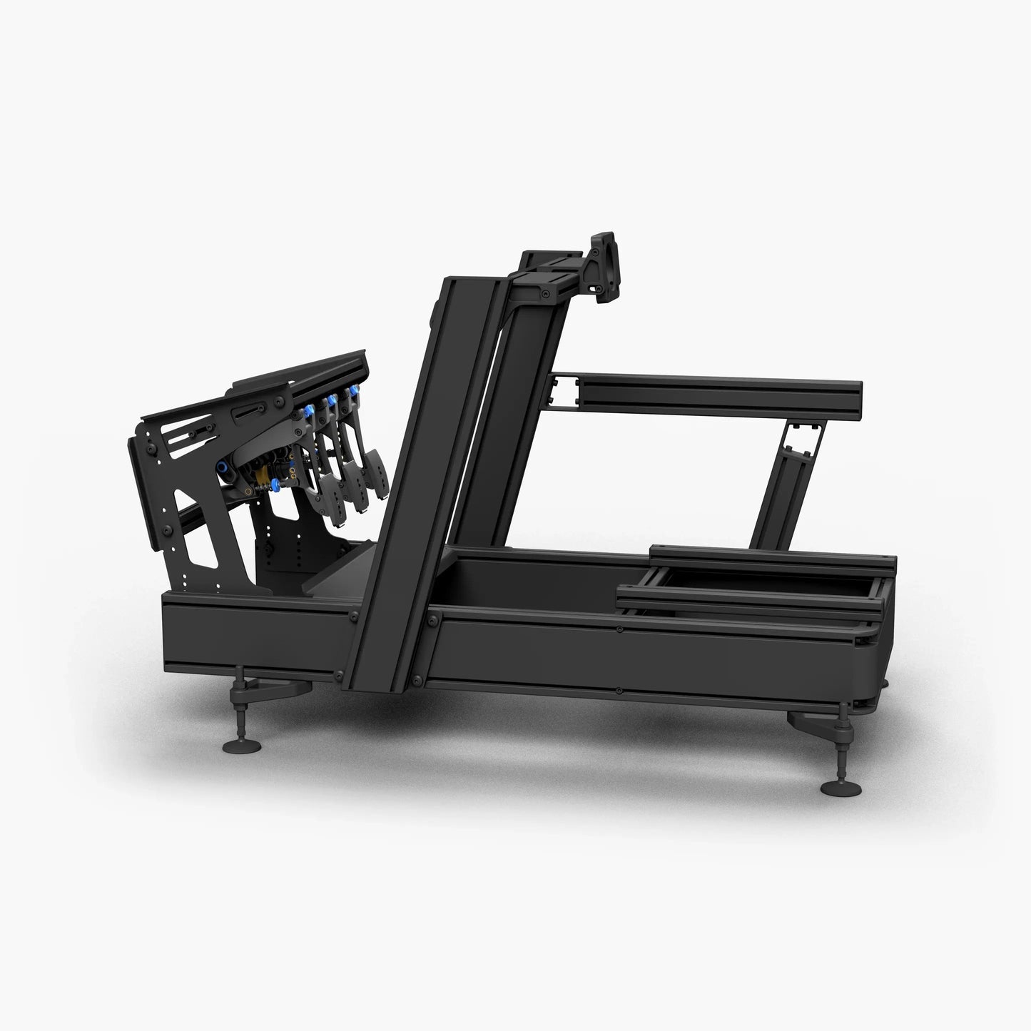 Dieses inverted pedal rack ermöglicht eine umgekehrte Pedalanordnung für eine GT-style Pedalposition. In der V2-Version wurde das Design überarbeitet und an die aktuelle Designsprache sowie die Materialstandards angepasst. Das Ergebnis: breite Pedalkompatibilität und vollständige Integration mit den aktuellen Versionen der Cockpits GT1 Evo, GT1 Pro, P1X Pro und P1X Ultimate – bei gleichzeitig steifer und gut einstellbarer Konstruktion.