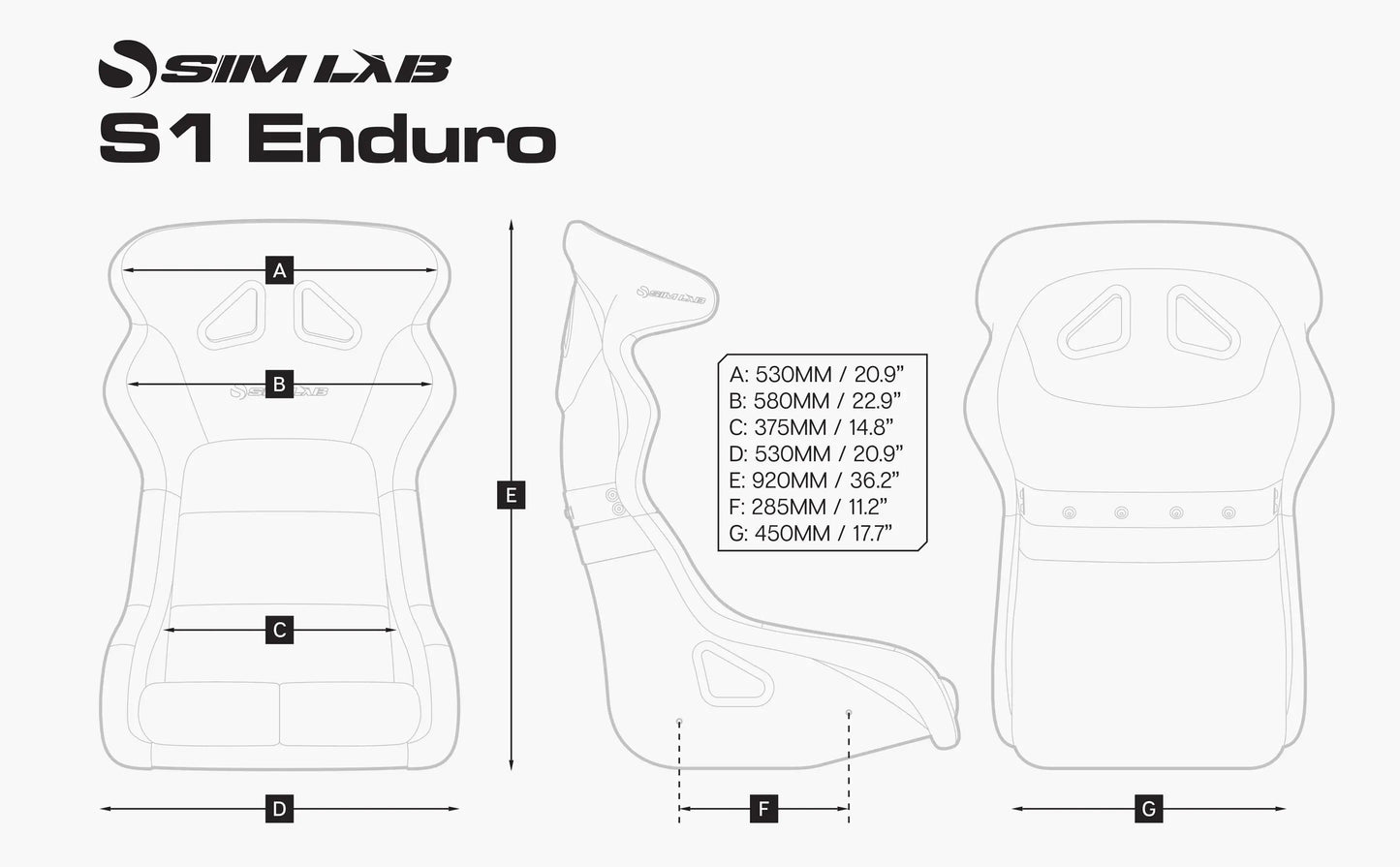 The Sim-Lab S1 Enduro bucket seat is designed for a true GT riding position, offering a natural, upright posture that balances control, comfort, and long-term support. Developed as part of Sim-Lab's latest design evolution, the S1 Enduro is engineered for uncompromising endurance sim racing.