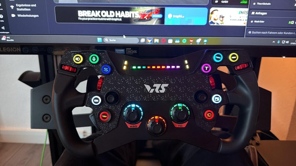 VRS hat in meinen Augen gezeigt das Ausstattung nicht immer teuer sein muss. Klar über Optik kann man sich ggf. streiten - mir gefällt es jedoch und der Preis ist unschlagbar. Über die Montage brauch ich nicht viel erzählen - QR an der Wheelbase einrasten lassen und fertig. Es wird automatisch in SimHub erkannt. Das offizielle VRS Profil ist bereits hinterlegt - Flaggen, Car left/right, Rev. Lights usw. werden automatisch von z.B. iRacing angezeigt. Eine individuelle Beleuchtung kann hier ebenfalls vorgenommen werden. (dies ist auch in der VRS Direct Drive Software möglich falls man SimHub nicht nutzen möchte) Overall bin ich mit der Verarbeitung, der angesprochenen Ausstattung und den Griffen sehr zufrieden. Danke an GSR für den schnellen Versand und Beratung.